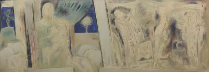 Αφήνω για το τέλος ένα έργο μουσειακού χαρακτήρα που μακάρι να αποκτήσει κάποιος δημόσιος φορέας. Η «Ανάσταση» (1940-41, κεντρική φωτ.) του Κωνσταντίνου Παρθένη ανήκει στο πλαίσιο της ύστερης μνημειακής του παραγωγής, όπου ο καλλιτέχνης αναπτύσσει με συνέπεια το δικό του ιδίωμα μεταφυσικής ελληνικότητας, στηριγμένο σε μια σύνθεση πειθαρχίας και πνευματικότητας. Το έργο αποτελεί μέρος ενός τριπτύχου που περιλαμβάνει την Παναγία με το Βρέφος και τη Σταύρωση, τα οποία σήμερα φυλάσσονται στην Εθνική Πινακοθήκη.