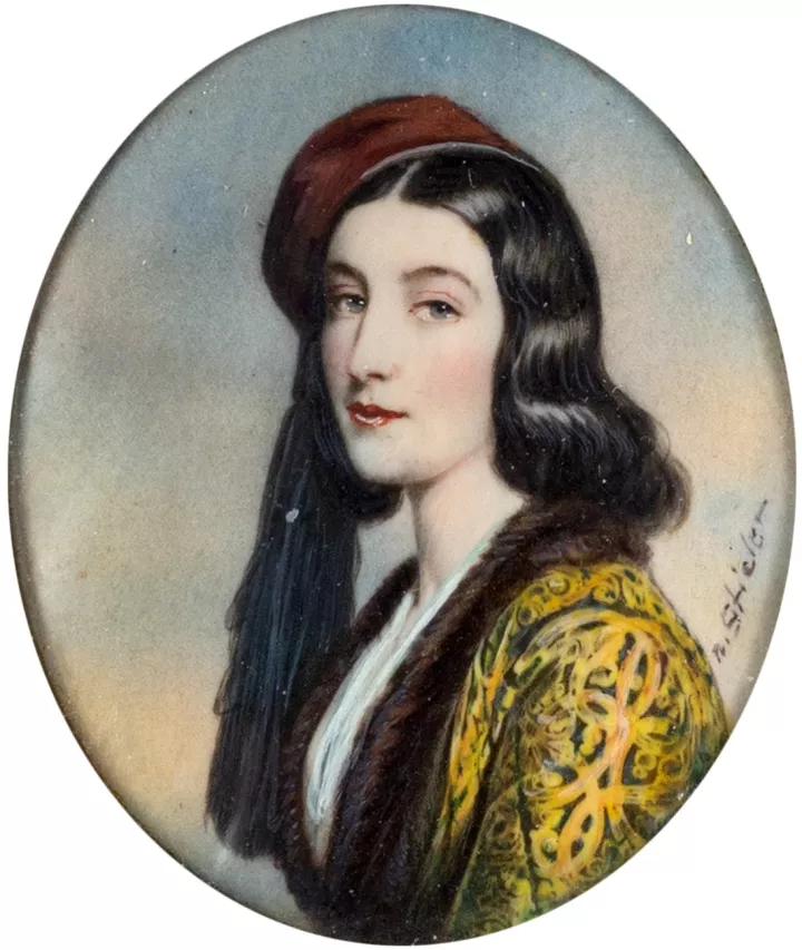 Ξεκινήσαμε με τον πρώτο Κυβερνήτη που τελευταία είναι και πάλι στην επικαιρότητα, αλλά η καρδιά μας ανήκει στη Ρόζα. Μικρογραφία εξαιρετικής λεπτότητας, ζωγραφισμένη σε ελεφαντοστό, αποδίδει την Αικατερίνη Ρόζα Μπότσαρη στον τύπο της εποχής (λαχνός 91, τιμή εκκίνησης 600 ευρώ). Η υπογραφή Stieler, έστω και δυσανάγνωστη, εντάσσει το έργο στο ευρωπαϊκό περιβάλλον της λόγιας προσωπογραφίας του 19ου αιώνα, όπου η Ελληνίδα καλλονή έδωσε πρόσωπο στο νεοσύστατο κράτος μέσα στα ευρωπαϊκά σαλόνια. Περισσότερα για το κορίτσι μπορείτε να διαβάσετε στο σημείωμα «Η καλλονή των Ελλήνων» σε δημοπρασία.