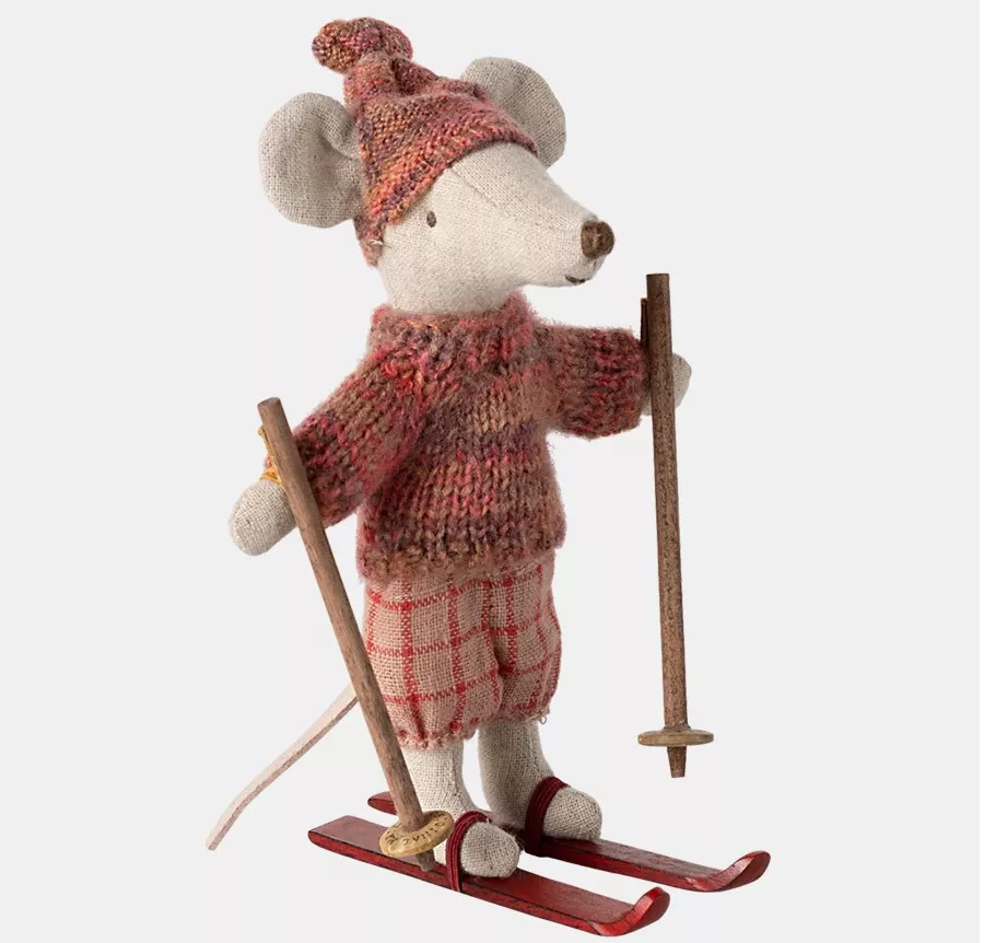 Ιδανική πρόταση για τους μικρούς μας φίλους με vintage αισθητική αποτελεί το ποντικάκι-σκιέρ, ένα παιχνίδι σχεδιασμένο από την Maileg (παρακάτω φωτ.). Προτείνεται για ηλικίες από τριών ετών και άνω και πωλείται στα 44 ευρώ.