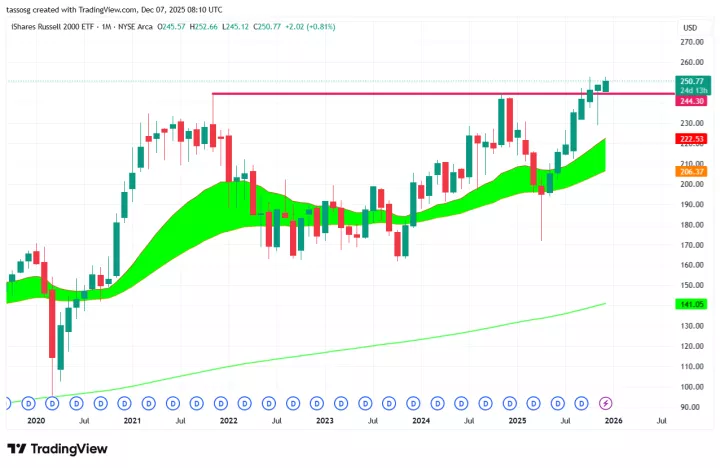 Ο δείκτης μικρής κεφαλαιοποίησης της χρηματιστηριακής αγοράς των ΗΠΑ (IWM) βρίσκεται σε διάσπαση ενός πενταετούς εύρους τιμών, έπειτα από χρόνια υπο-απόδοσης έναντι του S&P 500.