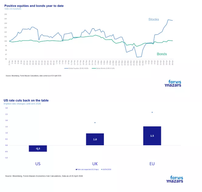 Παρά τις νέες ανησυχίες για τα Στενά του Ορμούζ, τα οποία βρίσκονται πλέον στην έβδομη εβδομάδα αποκλεισμού, οι αγορές μετοχών κατέγραψαν πρόσφατα νέα υψηλά, ενώ το κόστος δανεισμού έχει υποχωρήσει από τα πρόσφατα επίπεδα, με τους επενδυτές, για ακόμη μία φορά, να τοποθετούνται υπέρ μειώσεων επιτοκίων στις ΗΠΑ.