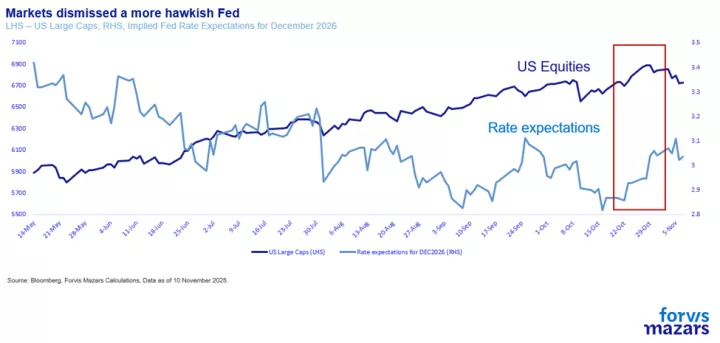 Το βασικό θέμα είναι η μια επιστροφή σε κάποια κανονικότητα («Mean Reversion»), καθώς η γεωπολιτική πραγματικότητα και ο κανόνας του δικαίου περιορίζουν την ικανότητα και την όρεξη των κυβερνήσεων να αυξάνουν την αβεβαιότητα. Οι αγορές, ενισχυμένες από ισχυρά εταιρικά αποτελέσματα (82% των εταιρειών ξεπέρασαν τις προσδοκίες), θεωρούν ότι μπορούν να γίνουν πιο αισιόδοξες καθώς η δυνατότητα του Προέδρου των ΗΠΑ να διαταράσσει μειώνεται.