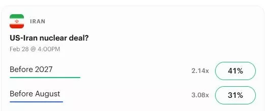 Στην πιθανότητα να υπάρξει συμφωνία για τα πυρηνικά μεταξύ ΗΠΑ και Ιράν, πριν ή μετά τον Αύγουστο του 2027: