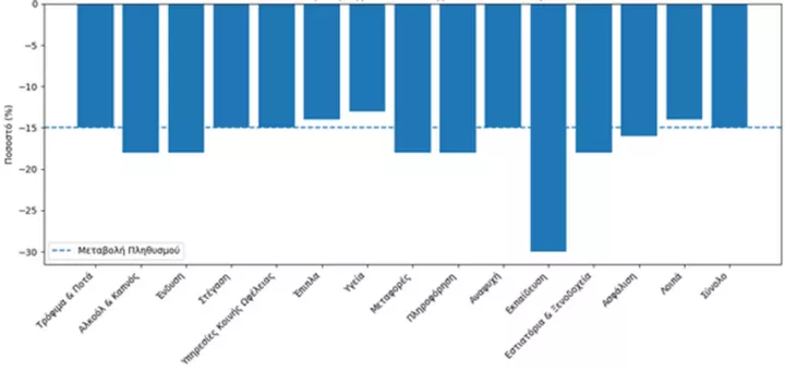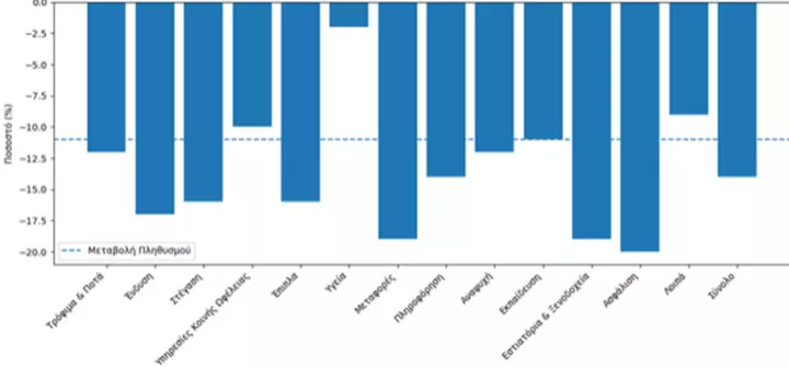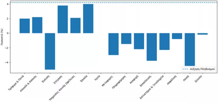Αυτές οι τάσεις δεν επηρεάζουν όλους τους κλάδους το ίδιο. Η κατανάλωση μετατοπίζεται: λιγότερα χρήματα κατευθύνονται στην εκπαίδευση και σε αγαθά που συνδέονται με τις νεότερες ηλικίες, ενώ αυξάνεται η σχετική σημασία της υγείας, της φαρμακευτικής δαπάνης, των τροφίμων και των υπηρεσιών φροντίδας.