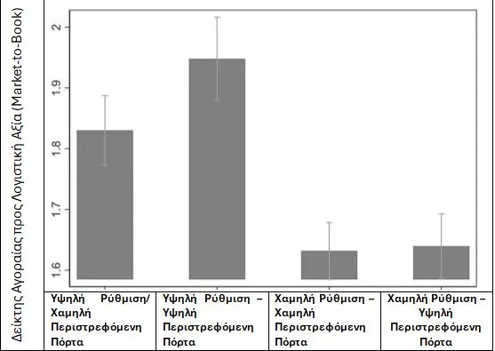 Αρχικά, διαπίστωσαν ότι οι εταιρείες που υπόκεινται σε αυστηρότερη ρύθμιση έχουν κατά μέσο όρο χαμηλότερες αποτιμήσεις. Αυτό δεν αποτελεί έκπληξη, καθώς η ρύθμιση τείνει να περιορίζει την ανάπτυξη και να προστατεύει και άλλους ενδιαφερόμενους πέρα από τους μετόχους (π.χ. το περιβάλλον, τους εργαζομένους, τους καταναλωτές). Οι κανόνες αυτοί αυξάνουν το κόστος, μειώνουν τα περιθώρια κέρδους και περιορίζουν τις ευκαιρίες ανάπτυξης σε σχέση με μια πλήρως ανεξέλεγκτη αγορά. Παράλληλα όμως δημιουργούν σημαντικά οφέλη, όπως ασφαλέστερους χώρους εργασίας, καθαρότερο περιβάλλον και προϊόντα που δεν βλάπτουν τους καταναλωτές.