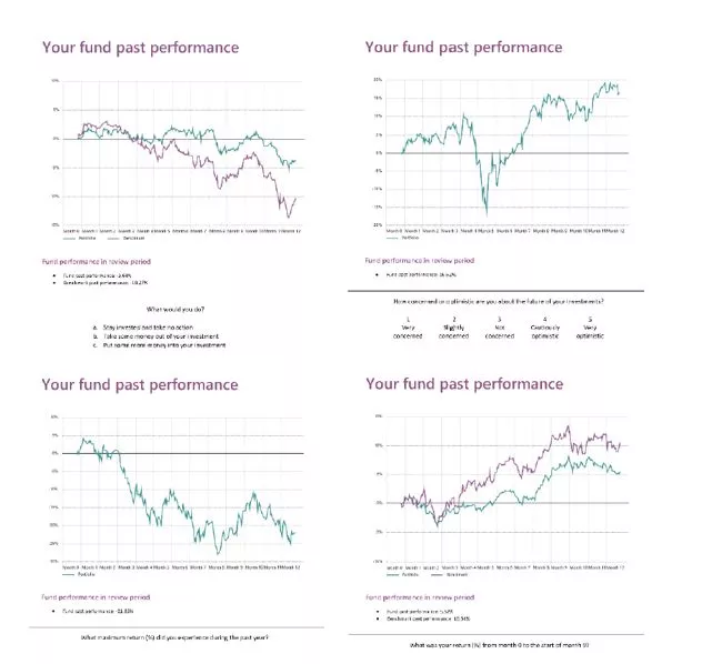 Μια ερευνητική ομάδα από το University of Reading στο Ηνωμένο Βασίλειο εξέτασε πώς αντιδρούν τρεις ομάδες συμμετεχόντων: 12 χρηματοοικονομικούς επαγγελματίες, 24 πελάτες που χρησιμοποιούν συμβούλους επενδύσεων και 24 αρχάριους επενδυτές (φοιτητές). Σε όλους παρουσιάστηκαν τέσσερις εκδοχές απόδοσης ενός επενδυτικού ταμείου: δύο με θετική και δύο με αρνητική απόδοση, καθεμία με ή χωρίς τη σύγκριση ενός δείκτη αναφοράς (benchmark). Οι ερευνητές χρησιμοποίησαν τεχνολογία eye-tracking για να δουν πού ακριβώς έπεφτε το βλέμμα κάθε συμμετέχοντα και για πόση διάρκεια.