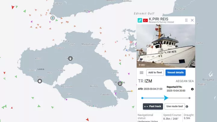 Το τουρκικό ερευνητικό σκάφος «Πίρι Ρέις» βρισκόταν το Σάββατο κοντά στις τουρκικές αρχές, βόρεια της Λέσβου, εν μέσω της παράνομης τουρκικής οδηγίας (Navtex) που έχει ανακοινώσει η Άγκυρα από τις 4 Οκτωβρίου έως τις 14 Οκτωβρίου.