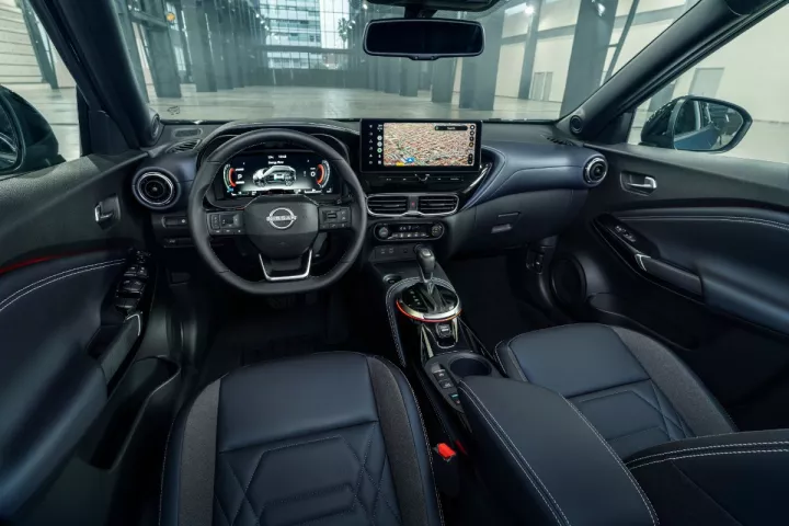 Στο εσωτερικό, η σύγχρονη αισθητική αποτυπώνεται με επενδύσεις από συνθετικό δέρμα σε σκούρο μπλε χρώμα στο ταμπλό, την κεντρική κονσόλα και τις επενδύσεις των θυρών. Λεπτομέρειες σε Black Gloss πλαισιώνουν τους αεραγωγούς, τα χειριστήρια του κλιματισμού και τα επιμέρους στοιχεία της καμπίνας, ενισχύοντας τη συνολική αίσθηση ποιότητας.