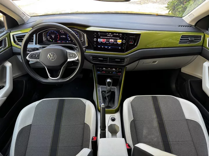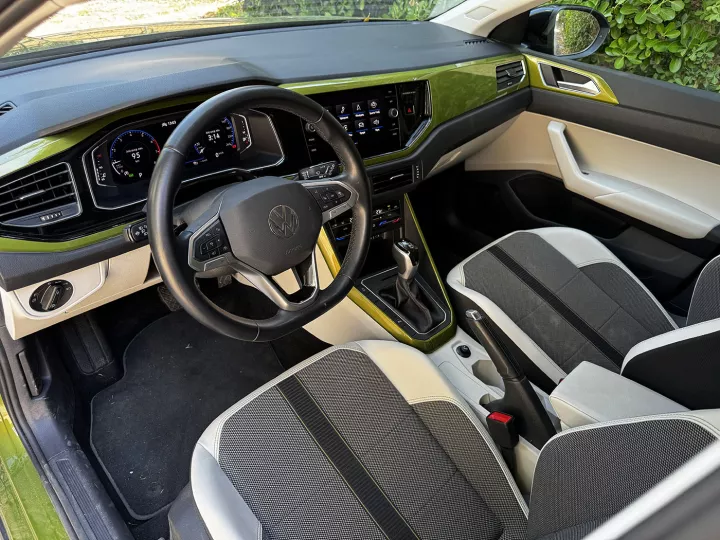 Στο εσωτερικό το design δεν είναι συναρπαστικό, η ποιότητα κατασκευής όμως, το φινίρισμα και η εργονομία, είναι αρκετά υψηλού επιπέδου. Η κορυφαία σε ιπποδύναμη έκδοση του Volkswagen Taigo έχει τα πάντα από πλευράς εξοπλισμού (διαθέσιμο μόνο στην πλούσια έκδοση Style), αλλά αυτό που είναι πραγματικά άξιο λόγου είναι το πως η Volkswagen έχει βρει τον τρόπο να χωρέσει σε ένα περιορισμένο σχετικά περίγραμμα αμαξώματος (που εξασφαλίζει ευελιξία) τουλάχιστον τέσσερις μεγαλόσωμους ενήλικες με χαρακτηριστική άνεση.
