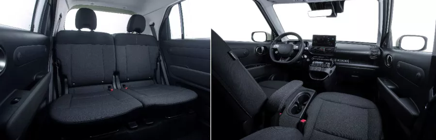 Bέβαια εκτός από την συνδεσιμότητα, το Hyundai Inster ξεχωρίζει και για την πρακτικότητα που προσφέρει που είναι αντιστρόφως ανάλογη των compact εξωτερικών του διαστάσεων. Βασισμένο στο εντελώς επίπεδο πάτωμα και στο μεταξόνιο των 2.580 mm (μεγαλύτερο και από αυτό μοντέλων της αμέσως μεγαλύτερης κατηγορίας), το Hyundai Inster εξασφαλίζει γενναιόδωρο χώρο για τους επιβάτες, ακόμα και στη δεύτερη σειρά. Μάλιστα το αντίστοιχο κάθισμα μπορεί να συρθεί προς τα μπροστινά έως και 16 εκατοστά, απογειώνοντας την πρακτικότητα και αυξάνοντας τη χωρητικότητα του πορτμπαγκάζ στα 351 λίτρα. Εάν αναδιπλωθούν και οι πλάτες, τότε η χωρητικότητα φτάνει τα 1.059 λίτρα. Πλήρως αναδιπλούμενα είναι και τα μπροστινά καθίσματα, ενώ οι άφθονες και πρακτικές θέσεις για μικροαντικείμενα δεν μπορούν να περάσουν απαρατήρητες.