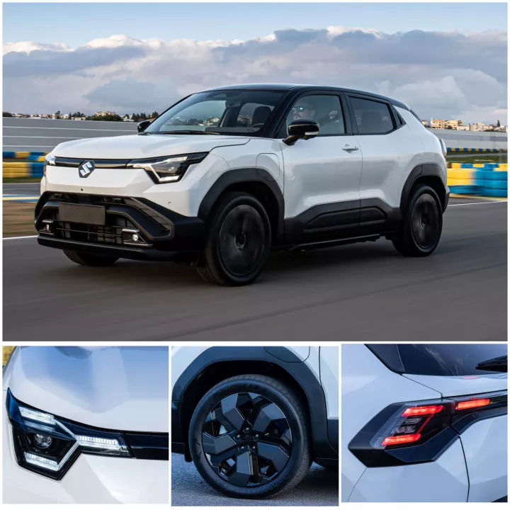 Το νέο Suzuki e Vitara λοιπόν συνδυάζει την high-tech εικόνα ενός ηλεκτρικού με τους σκληροτράχηλους υπαινιγμούς ενός… Vitara, έχοντας 180 mm απόστασης από το έδαφος. Το e Vitara έχει μήκος 4.275mm και μεταξόνιο στα 2.700mm, όντας 100mm μακρύτερο από το κλασικό Vitara, την ώρα που διαθέτει 200 περισσότερα χιλιοστά στο μεταξόνιο. Επίσης είναι φαρδύτερο, ψηλότερο και με κοντούς προβόλους, ενώ υιοθετεί μια εντελώς νέα αισθητική με φώτα 3 σημείων, εξαγωνική μάσκα, κρυφές πίσω χειρολαβές, μυώδη χαρακτηριστικά και «φουσκώματα» από όλες τις πλευρές του.