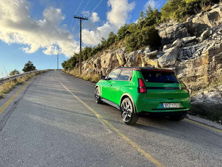 Έχουμε ήδη ξεκινήσει την αναφορά μας στο Renault 5 κάνοντας λόγο για τον οδηγικό του χαρακτήρα, οπότε έρχεται η ώρα να γίνουμε πιο συγκεκριμένοι για να πούμε ότι η σβελτάδα του Renault 5 της δοκιμής μας δένει ιδανικά με το σπορτίφ στήσιμο αυτού του ιδιαίτερου ηλεκτρικού αυτοκινήτου, που ξαφνιάζει ευχάριστα από την αρχή με την αίσθηση που προσφέρει στον οδηγό του. Βλέπετε, το γαλλικό αυτοκίνητο συνδυάζει μια σχεδόν premium ποιότητα κύλισης με μια «ζωντανή» οδική συμπεριφορά, που εν μέρει οφείλεται στην πίσω ανάρτηση πολλαπλών συνδέσμων, αλλά και στο «συγκρατημένο» για τα δεδομένα των ηλεκτρικών οχημάτων βάρος (κάτω από 1.500 κιλά).