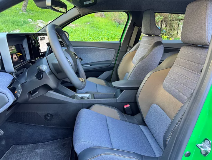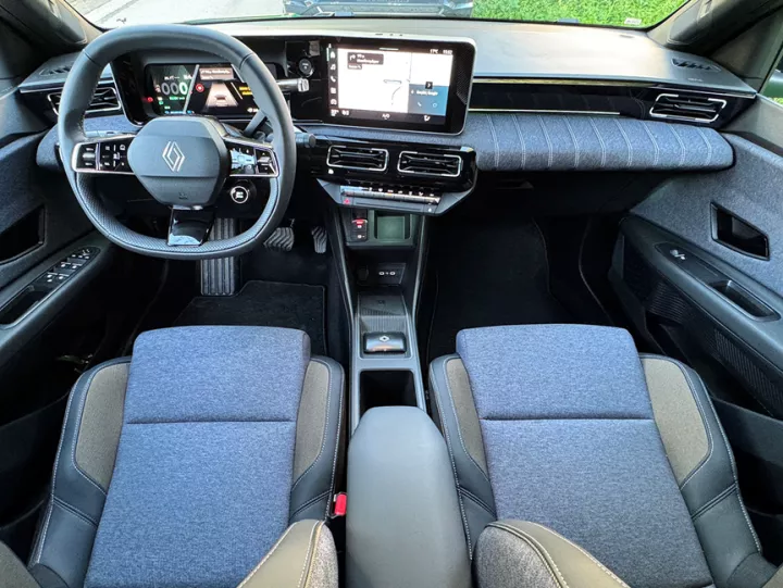Στο εσωτερικό διαπιστώνεις επίσης τη συνέπεια που χαρακτηρίζει το design του συγκεκριμένου μοντέλου, με ένα σαλόνι που συνδυάζει τη μινιμαλιστική σχεδίαση με την προηγμένη τεχνολογία και τη σημασία στην λεπτομέρεια. Ενώ ιδιαίτερο τόνο σε αυτό το περιβάλλον προσδίδουν κάποια χαρακτηριστικά διακριτικά στοιχεία, όπως η επένδυση από συνθετικό δέρμα στο ταμπλό, οι διπλές ραφές και το τετραγωνισμένο σχήμα του πίνακα οργάνων. Βέβαια, δεν πρόκειται για ένα κανονικό «καντράν», αλλά για μία ψηφιακή οθόνη 10,25 ιντσών, ενώ υπάρχει και μία «10άρα» κεντρική οθόνη αφής, από όπου ελέγχονται οι περισσότερες λειτουργίες και το (ευκολόχρηστο) σύστημα infotainment, το οποίο ενσωματώνει υπηρεσίες Google και τον ψηφιακό βοηθό “Reno” ο οποίος συνεργάζεται με το ChatGPT. Σημειώστε πως υπάρχουν φυσικοί διακόπτες για το κλιματισμό, που είναι ευπρόσδεκτοι εργονομικά, όπως και τα κουμπιά στο τιμόνι που δεν ενεργοποιούνται τυχαία.