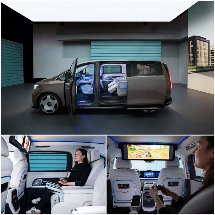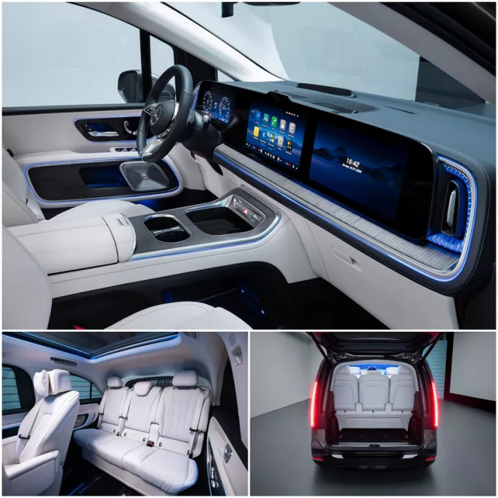 Το cockpit διαθέτει την προαιρετική MBUX Superscreen, με τρεις οθόνες κάτω από μία ενιαία γυάλινη επιφάνεια, ενώ για τους πίσω επιβάτες προσφέρεται το MBUX Rear Space Experience. Σε αυτή την περίπτωση, μια αναδιπλούμενη οθόνη 31,3 ιντσών με ανάλυση 8K μετατρέπει την καμπίνα σε χώρο ψυχαγωγίας ή εργασίας, υποστηρίζοντας ακόμη και βιντεοδιασκέψεις.