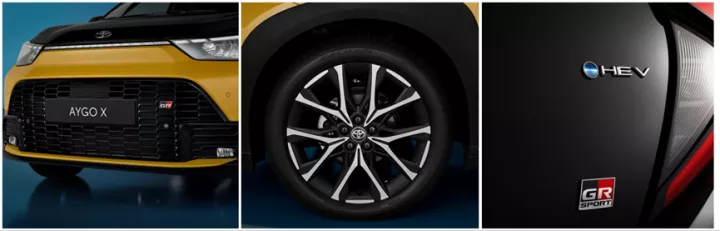 Kάπου εδώ αξίζει κανείς να σταθούμε πως εκτός από την υβριδική τεχνολογία, το ανανεωμένο Toyota Aygo X λανσάρει για πρώτη φορά την εξοπλιστική γραμμή GR Sport, χάρη στην οποία το πιο μικρό Toyota αποκτά έναν σαφώς δυναμικότερο χαρακτήρα συνδυάζοντας στοιχεία, όπως μάσκα με το χαρακτηριστικό μοτίβο «G-pattern», αποκλειστικό χρώμα Mustard, σπορτίφ λεπτομέρειες και ανάλογες παρεμβάσεις σε ανάρτηση και σύστημα διεύθυνσης.