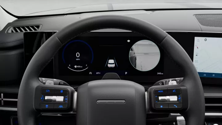 Από την άλλη, το Blind-Spot View Monitor (BVM) του Santa Fe ενισχύει την ασφάλεια παρέχοντας οπτικές εικόνες των τυφλών σημείων του οχήματος σε πραγματικό χρόνο. Όταν ενεργοποιείται το φλας, οι πλευρικά τοποθετημένες κάμερες εμφανίζουν ζωντανή εικόνα του αντίστοιχου τυφλού σημείου στον πίνακα οργάνων. Αυτή η λειτουργία επιτρέπει στους οδηγούς να ανιχνεύουν οχήματα, ποδηλάτες ή άλλα εμπόδια που μπορεί να μην είναι ορατά στους συμβατικούς καθρέφτες, μειώνοντας τον κίνδυνο σύγκρουσης και ενισχύοντας τη συνολική αυτοπεποίθηση και ασφάλεια κατά την αλλαγή λωρίδας.
