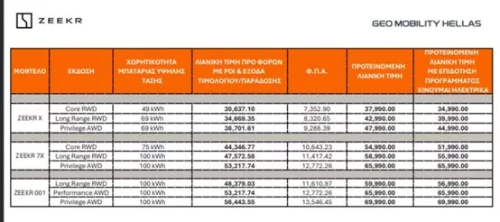 Όπως όλα τα μοντέλα Zeekr, έτσι και το 7Χ συνοδεύεται από εγγύηση 5 ετών ή 100.000 km, με δυνατότητα αυτόματης επέκτασης έως 10 έτη ή 200.000 km μέσω του Δικτύου Εξουσιοδοτημένων Συνεργατών Service ZEEKR. Η μπαταρία υψηλής τάσης καλύπτεται για 8 έτη ή 200.000 km, ό,τι έρθει πρώτο. Όσο για τις τιμές; Μαζί με την κρατική επιδότηση ξεκινούν από 51.990 ευρώ για τη βασική δικίνητη έκδοση.