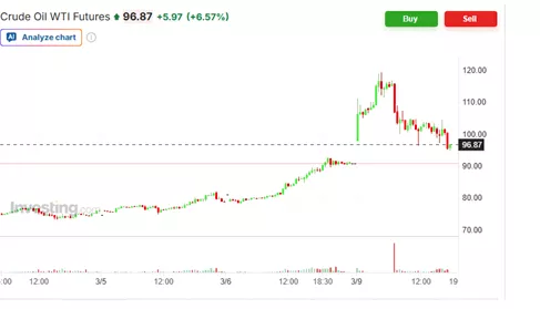 📈 Οι περικοπές παραγωγής από χώρες του Κόλπου έχουν ήδη οδηγήσει τις τιμές του πετρελαίου σε εκρηκτικό ράλι πάνω από τα 100 δολάρια το βαρέλι, με ενδοσυνεδριακές κινήσεις ακόμη και στα 120 δολάρια, καταγράφοντας μία από τις μεγαλύτερες ημερήσιες αυξήσεις στην ιστορία της αγοράς.