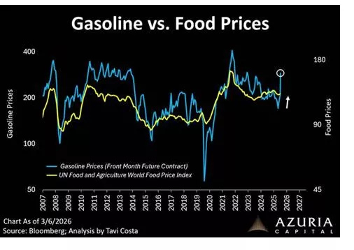 🔎 Κάθε ισχυρή άνοδος στις τιμές των καυσίμων ακολουθείται συχνά από άνοδο στις παγκόσμιες τιμές τροφίμων. Η σχέση αυτή δεν είναι τυχαία: η ενέργεια επηρεάζει το κόστος παραγωγής, μεταφοράς και λιπασμάτων, άρα τελικά το κόστος που φτάνει στο ράφι.