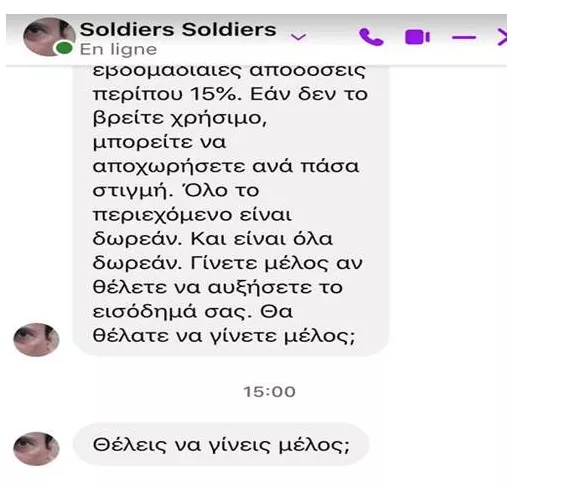 Κυκλοφορεί στα social media ομάδα με την ονομασία “Soldiers Soldiers” που χρησιμοποιεί τη φωτογραφία μου 📸 και υπόσχεται αποδόσεις 💸.