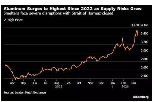 📊 Η εκτίναξη της τιμής του αλουμινίου στα υψηλότερα επίπεδα από το 2022 δεν είναι απλώς αποτέλεσμα ζήτησης, αλλά κυρίως αντανάκλαση αυξανόμενων κινδύνων προσφοράς. Η ένταση στα Στενά του Ορμούζ λειτουργεί ως κρίσιμος καταλύτης, καθώς επηρεάζει άμεσα την ενεργειακή αλυσίδα και το κόστος παραγωγής.