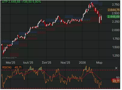 🔹 Η τρέχουσα υποχώρηση, της τάξης μόλις του -10% από τα πολυετή υψηλά, με τη μετοχή να διατηρείται πάνω από τα 10 ευρώ παρά τις πιέσεις της αγοράς, αποτελεί την ελάχιστη δυνατή διόρθωση για τίτλο που έχει προηγουμένως πολλαπλασιάσει την αξία του. Σε μετοχές αυτής της ποιότητας, τέτοιου είδους αναδιπλώσεις συνήθως αποδεικνύονται σύντομες στάσεις μέσα σε μια μεγαλύτερη ανοδική τάση.
