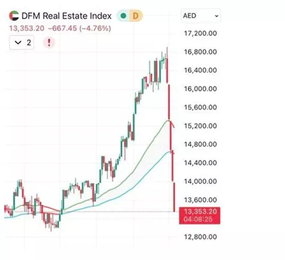 📊 Ο δείκτης ακινήτων του Dubai Financial Market (DFM) κατέγραψε μια από τις ταχύτερες διορθώσεις των τελευταίων ετών. Μέσα σε μόλις πέντε συνεδριάσεις έχει χάσει περίπου 20%, ενώ μόνο τη Δευτέρα υποχώρησε 4,76% στις 13.353 μονάδες.