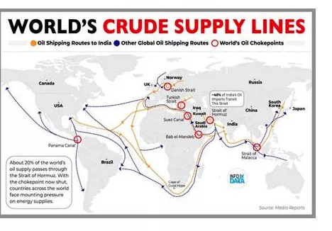 📊 Για χώρες όπως η Ινδία, η Κίνα, η Ιαπωνία και η Νότια Κορέα, η εξάρτηση είναι ακόμη μεγαλύτερη. Σε ορισμένες περιπτώσεις πάνω από το 40% των εισαγωγών πετρελαίου τους περνά από το Ορμούζ, γεγονός που μετατρέπει το πέρασμα σε έναν από τους σημαντικότερους γεωοικονομικούς μοχλούς του πλανήτη.