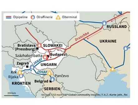 ⚙️ Η εναλλακτική που εξετάζεται είναι τεχνικά απλή αλλά πολιτικά σύνθετη: το πετρέλαιο να μεταφέρεται δια θαλάσσης στην Κροατία, να εκφορτώνεται στο τερματικό της Krk ή στο λιμάνι της Rijeka, και από εκεί να διοχετεύεται μέσω του αγωγού JANAF προς την Ουγγαρία και τη Σλοβακία.