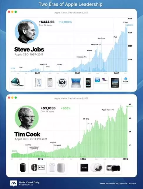 📌 Από το γκαράζ του 1976 στο Vision Pro του 2025 — Apple παραμένει η πιο σταθερή «ανωμαλία» του καπιταλισμού.