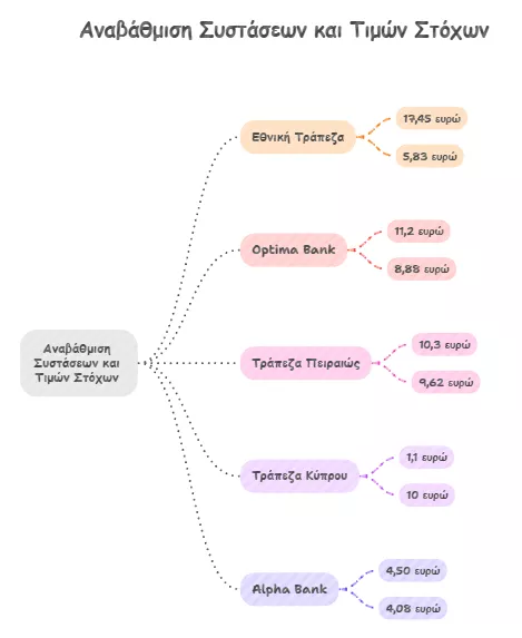 💰 Νέες τιμές-στόχοι: Εθνική 17,45€, Optima 11,20€, Πειραιώς 10,30€, Alpha Bank 4,50€.