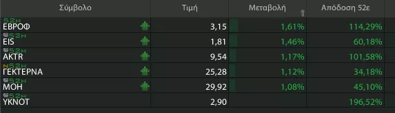 🟦 Περίπου έξι μετοχές έγραψαν νέα υψηλά 12μήνου την Παρασκευή — με εντυπωσιακές 12μηνες αποδόσεις, όπως φαίνονται στον πίνακα της στήλης.