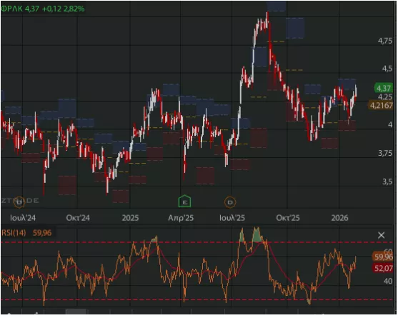 🟨 ΑΛΜΥ: Μετά από μακρά κίνηση πέριξ των 5 ευρώ, η πρόσφατη κινητικότητα δείχνει πρόθεση για νέα βάση ψηλότερα, που θα χρειαστεί ειδήσεις και αριθμούς.