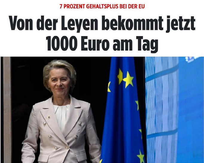 Οι 50.000 εργαζόμενοι στην ΕΕ θα λάβουν δεύτερη αύξηση μισθού σε έξι μήνες, σύμφωνα με την Bild η οποία και σημειώνει ότι μόνο το ημερομίσθιο της προέδρου της Κομισιόν θα φτάσει τα 1.000 ευρώ.