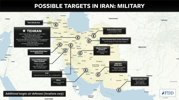Στρατιωτικοί στόχοι: Συγκεντρωμένοι κυρίως στα κεντρικά και βόρεια του Ιράν.