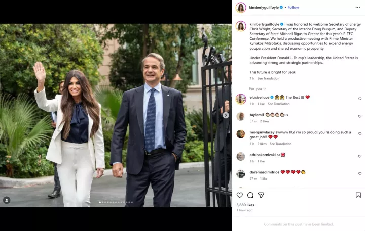 «Ήταν τιμή μου να υποδεχθώ τον Υπουργό Ενέργειας Κρις Ράιτ, τον Υπουργό Εσωτερικών Νταγκ Μπέργκαμ και τον Αναπληρωτή Υπουργό Εξωτερικών Μάικλ Ρίγκας στην Ελλάδα για το φετινό Συνέδριο P-TEC.