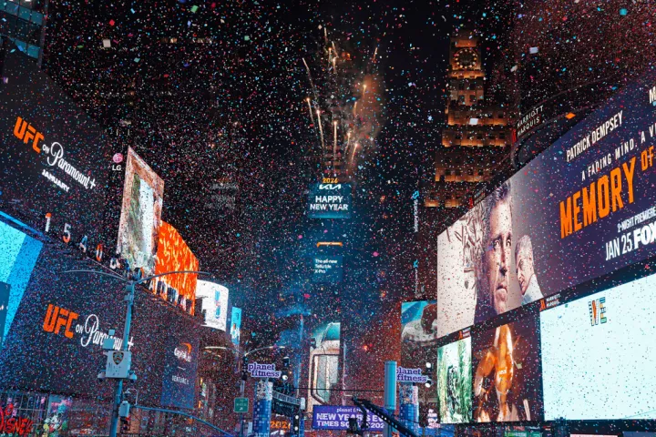 Στη Νέα Υόρκη χιλιάδες άνθρωποι παρακολούθησαν τη θρυλική μπάλα που σηματοδοτεί την αντίστροφη μέτρηση για την αλλαγή του χρόνου στην Τάιμς Σκουέρ. Την ίδια ώρα ο Δημοκρατικός Ζοχράν Μάμντανι ορκιζόταν δήμαρχος της πόλης, μετά τη νίκη του στις εκλογές του Νοεμβρίου.