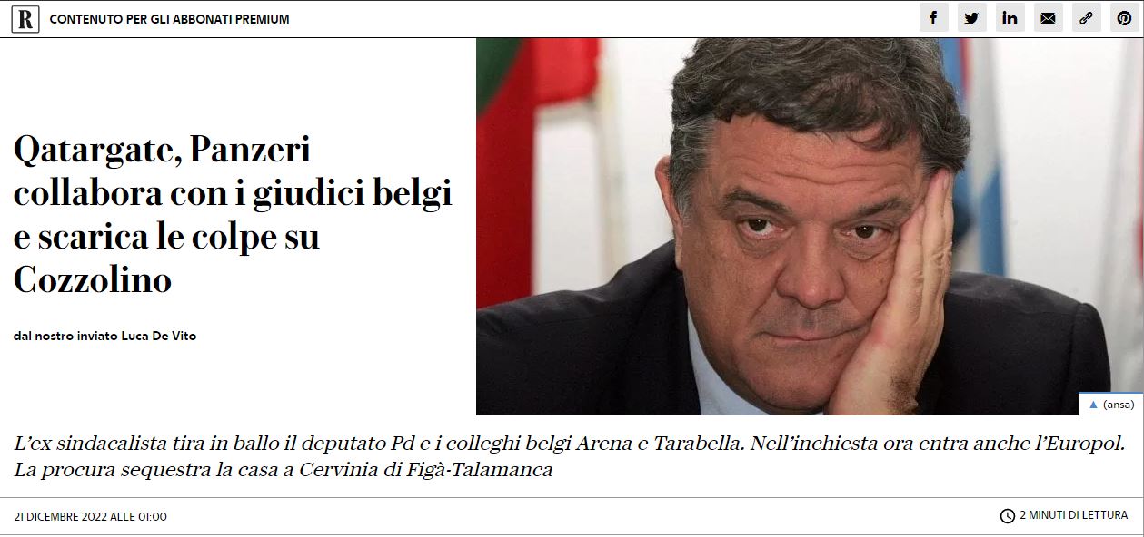Βάσει του δημοσιεύματος ο Παντσέρι δήλωσε έτοιμος να συνεργαστεί και έδωσε πληροφορίες για άλλους ευρωβουλευτές: πρώτα για τον Φραντσέσκο Κοτζολίνο, του Δημοκρατικού Κόμματος, ή το πρόσωπο που θα έπαιρνε τη θέση του στις βασικές θέσεις για τα συμφέροντα του Κατάρ και του Μαρόκου στο Ευρωπαϊκό Κοινοβούλιο.