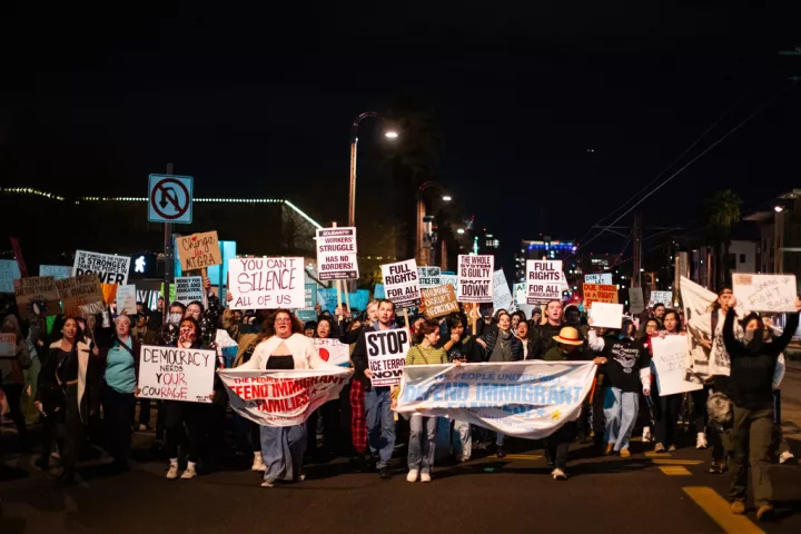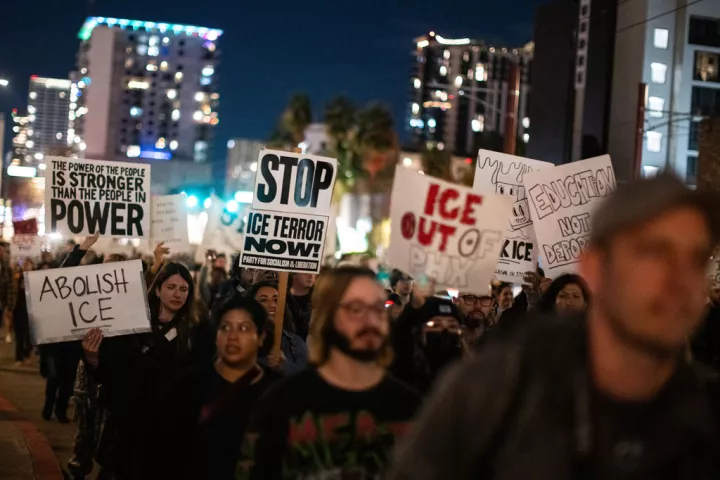 Ξανά και ξανά ακούγονταν τα συνθήματα «η αντίσταση στην ICE δεν είναι έγκλημα» και «η παρακολούθηση της ICE δεν είναι έγκλημα», συμπυκνώνοντας το κλίμα βαθιάς δυσπιστίας απέναντι στις πρακτικές της υπηρεσίας.