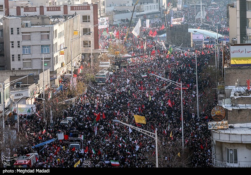 Το μέγεθος του πλήθους που είχε συγκεντρωθεί στην Τεχεράνη μπορούσε να συγκριθεί με αυτό που πλημμύρισε τους δρόμους της ιρανικής πρωτεύουσας το 1989 για την κηδεία του ιδρυτή της Ισλαμικής Δημοκρατίας αγιατολάχ Ρουχολάχ Χομεϊνί.