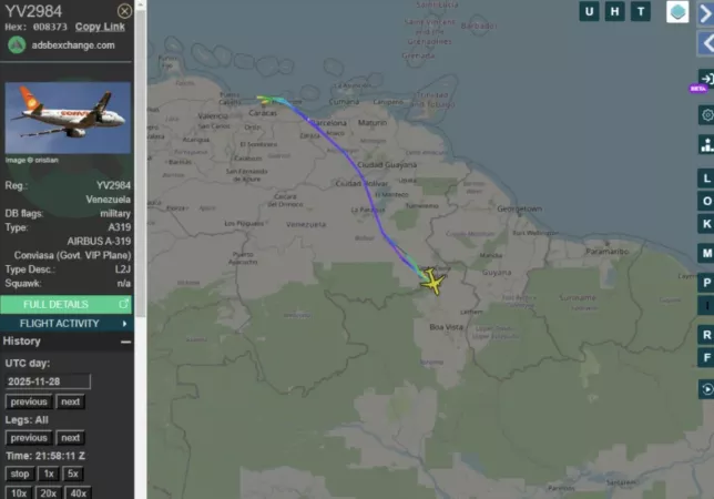 Σύμφωνα με την ιστοσελίδα ADSB Exchange, η οποία παρακολουθεί τα δεδομένα παρακολούθησης πτήσεων, το αεροσκάφος αναχώρησε από το Καράκας και πέταξε στα σύνορα με την πολιτεία Ροράιμα της Βραζιλίας πριν επιστρέψει στην πρωτεύουσα της Βενεζουέλας.
