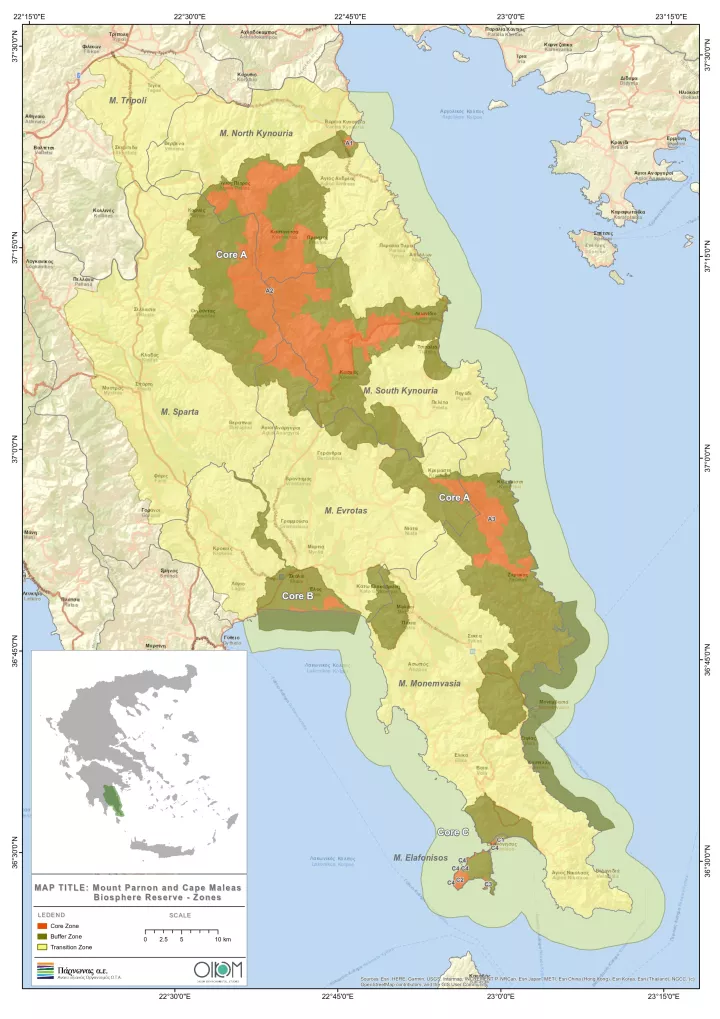 «Πριν ακριβώς 10 χρόνια εισήχθη στη δημόσια συζήτηση πρόταση της Αναπτυξιακή Πάρνωνα Α.Ε. να επιδιώξουμε την ένταξη της περιοχής στα Αποθέματα Βιόσφαιρας της UNESCO. (MAB UNESCO). Η παραπάνω στρατηγική για την Αειφόρο Ανάπτυξη και βιωσιμότητα της περιοχής, υιοθετήθηκε με αποφάσεις επτά Δημοτικών Συμβουλίων (Δήμοι: Τρίπολης, Βόρειας Κυνουρίας, Νότιας Κυνουρίας, Σπάρτης, Ευρώτα, Μονεμβασίας, Ελαφονήσου) και του Περιφερειάρχη Πελοποννήσου, Δημήτρη Πτωχού, ενώ επιστολή υποστήριξης έδωσαν πέντε υπουργεία: Περιβάλλοντος και Ενέργειας, Αγροτικής Ανάπτυξης και Τροφίμων, Πολιτισμού, Παιδείας και Ναυτιλίας και Νησιωτικής Πολιτικής. Η πρόταση υποβλήθηκε μέσω του Υπουργείου Εξωτερικών τον Σεπτέμβρη του 2024» δήλωσε στο Αθηναϊκό - Μακεδονικό Πρακτορείο Ειδήσεων ο Διευθύνων Σύμβουλος του Αναπτυξιακού Οργανισμού Πάρνωνας Α.Ε., Μαρίνης Μπερέτσος με τον ίδιο να υπογραμμίζει ότι «ένα νέο κεφάλαιο με διεθνή αναγνώριση ανοίγει για την Ανατολική Πελοπόννησο».