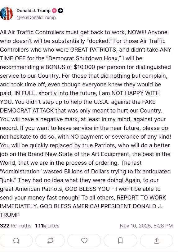 — Karoline Leavitt (@PressSec) November 10, 2025