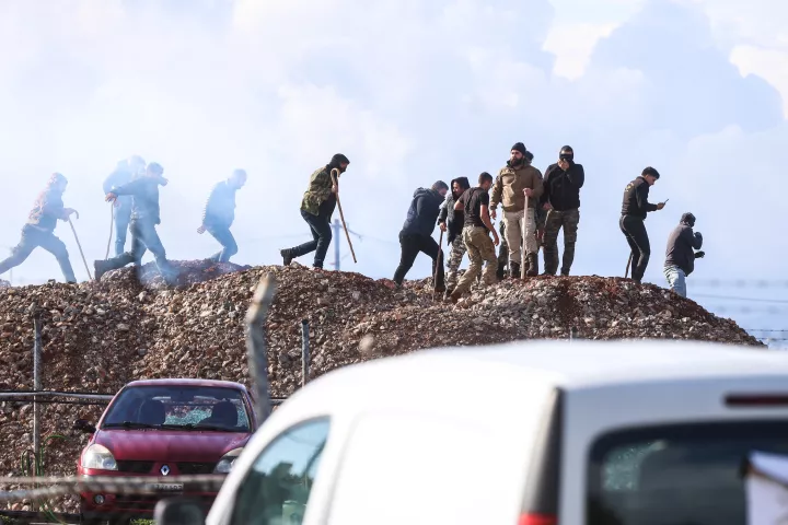 Μετά τα επεισόδια στον οδικό άξονα που οδηγεί στο αεροδρόμιο, τον πετροπόλεμο, τα χημικά, τις κρότου λάμψεις και καπνογόνα, αγρότες και κτηνοτρόφοι κατάφεραν να σπάσουν τον αστυνομικό κλοιό να φτάσουν στην κεντρική πύλη όπου και τοποθέτησαν κάδους απορριμμάτων και τα σώματα τους, όπως είπαν, «ως ασπίδα για τον αγώνα επιβίωσης» που δίνουν.