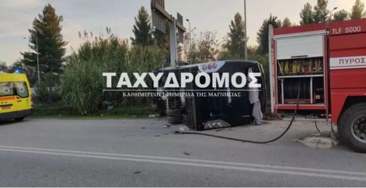 Ανατροπή λεωφορείου με περίπου 40 επιβάτες σημειώθηκε το απόγευμα του Σαββάτου στην παλιά Εθνική Οδό πριν τον Ριζόμυλο στον Βόλο.