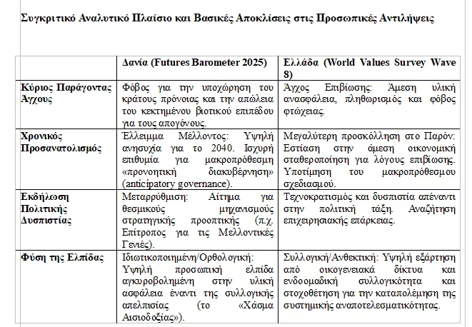 Έτσι μπορεί να διαμορφωθεί, μία συγκριτική ανάλυση του κοινού αισθήματος αναφορικά με τις μελλοντικές προσδοκίες, τη διαγενεακή δικαιοσύνη και την πολιτική εμπιστοσύνη στη Δανία και την Ελλάδα, δύο χώρες που αντιπροσωπεύουν διακριτά αρχέτυπα εντός του ευρωπαϊκού κοινωνικοπολιτικού τοπίου.
