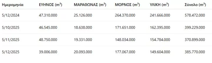 Οι πρόσφατες βροχοπτώσεις ενίσχυσαν με περίπου 15 εκατομμύρια κυβικά τα αποθέματα της ΕΥΔΑΠ.