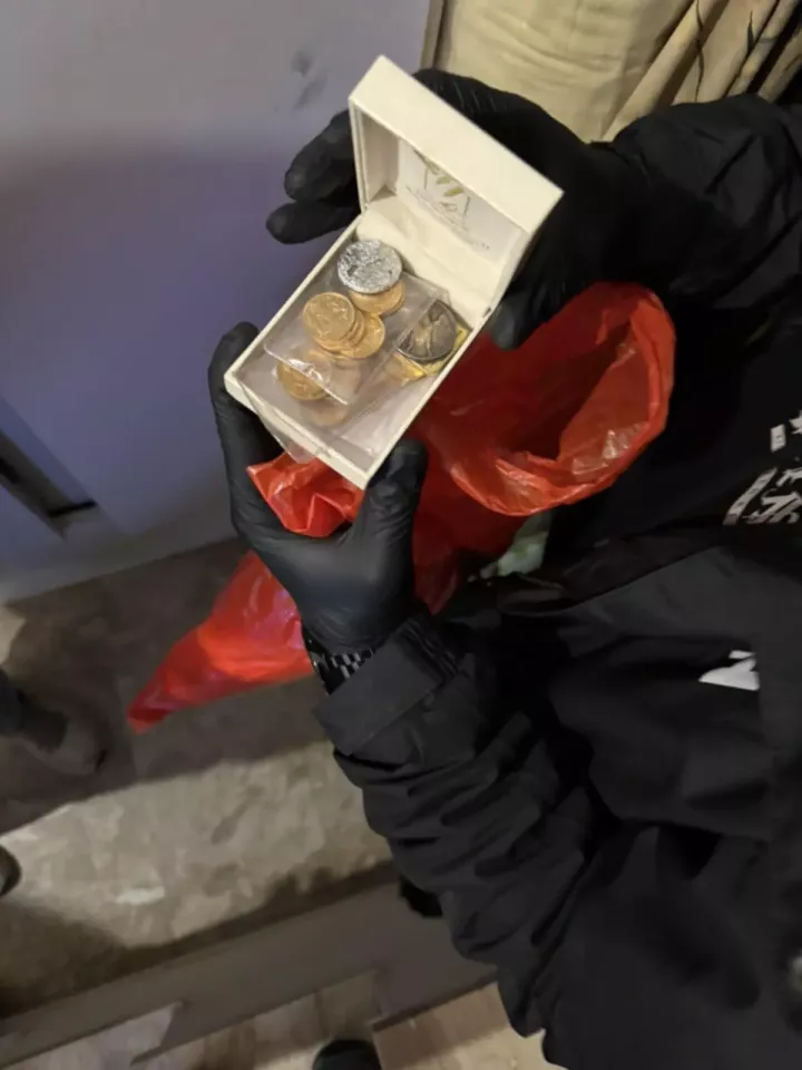 Όπως αναφέρεται στο σχετικό δελτίο Τύπου, κατασχέθηκαν, μεταξύ άλλων, 19 χρυσές λίρες, μία ράβδος χρυσού, 3 χρυσές αλυσίδες και το χρηματικό ποσό των 35.750-ευρώ.