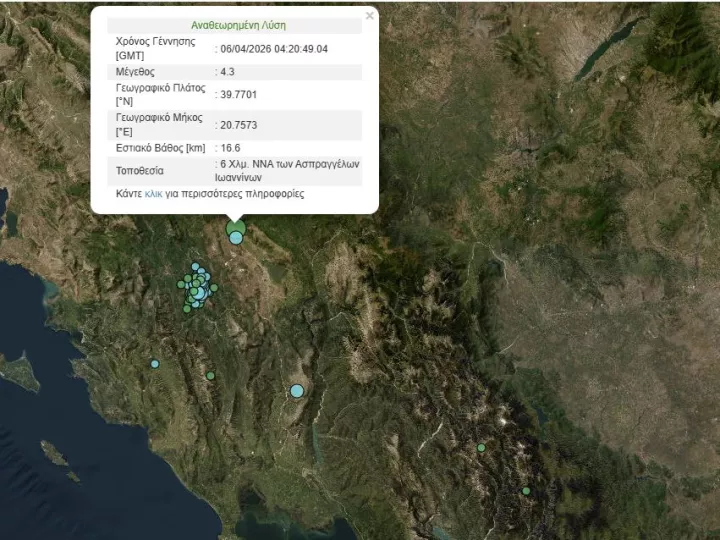 Η πιο πρόσφατη δόνηση, μεγέθους περίπου 4,5 Ρίχτερ, έγινε έντονα αισθητή στα Ιωάννινα, παρά το σχετικά μικρό της μέγεθος.