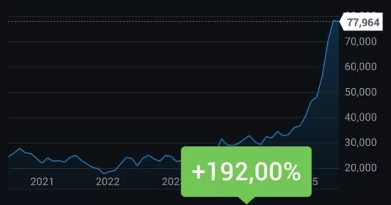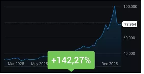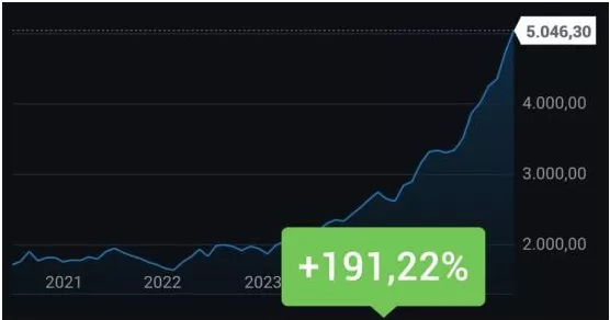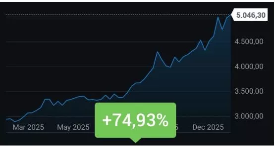 Μέσα σε αυτό το νέο περιβάλλον φρενίτιδας, κατά τη διάρκεια των τελευταίων 12 μηνών η τιμή του χρυσού ανέβηκε κατά +74,93%
